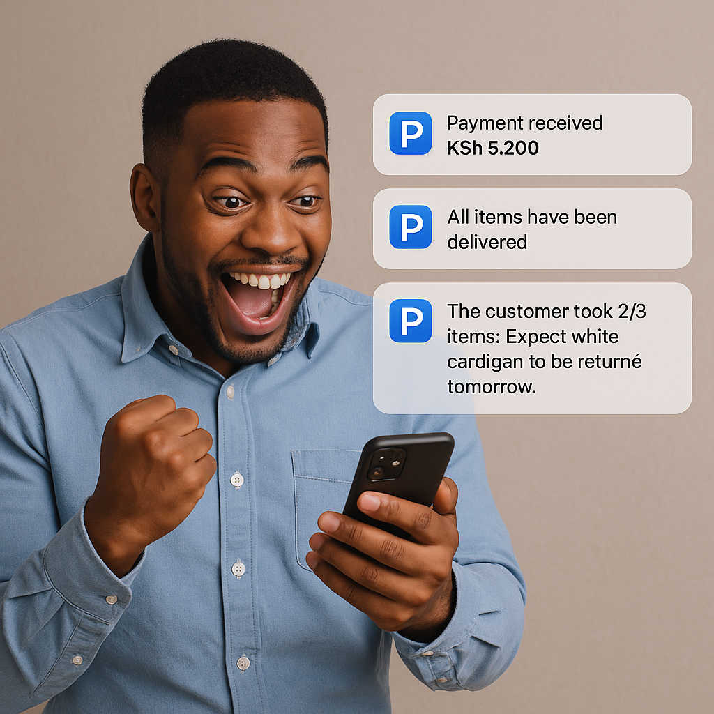 Paydel now supports try-before-you-buy delivery workflows, where riders record what items the customer keeps, prompt instant payment for confirmed items, and clearly mark what is not picked and returning, giving businesses full clarity on sales, returns, and stock coming back.